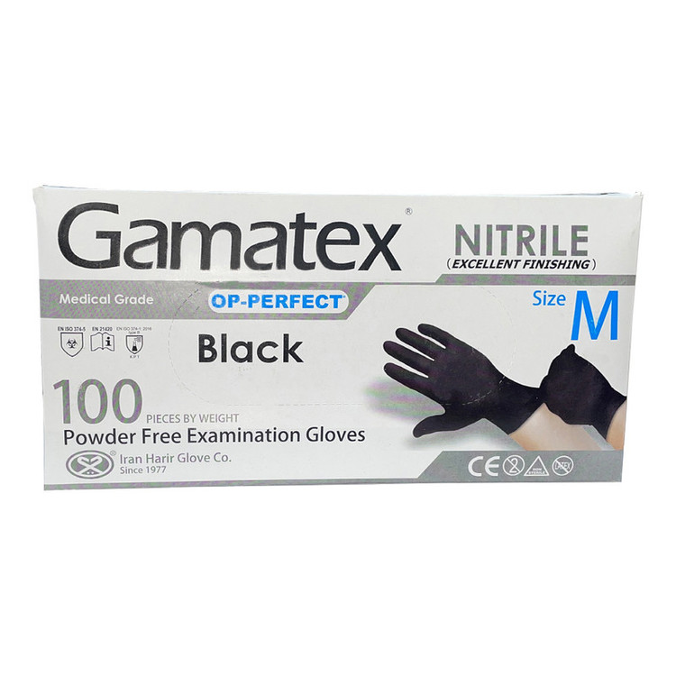 دستکش نیتریل غیر پودری حریر مدل گاماتکس سایز متوسط (M) بسته 100 عددی