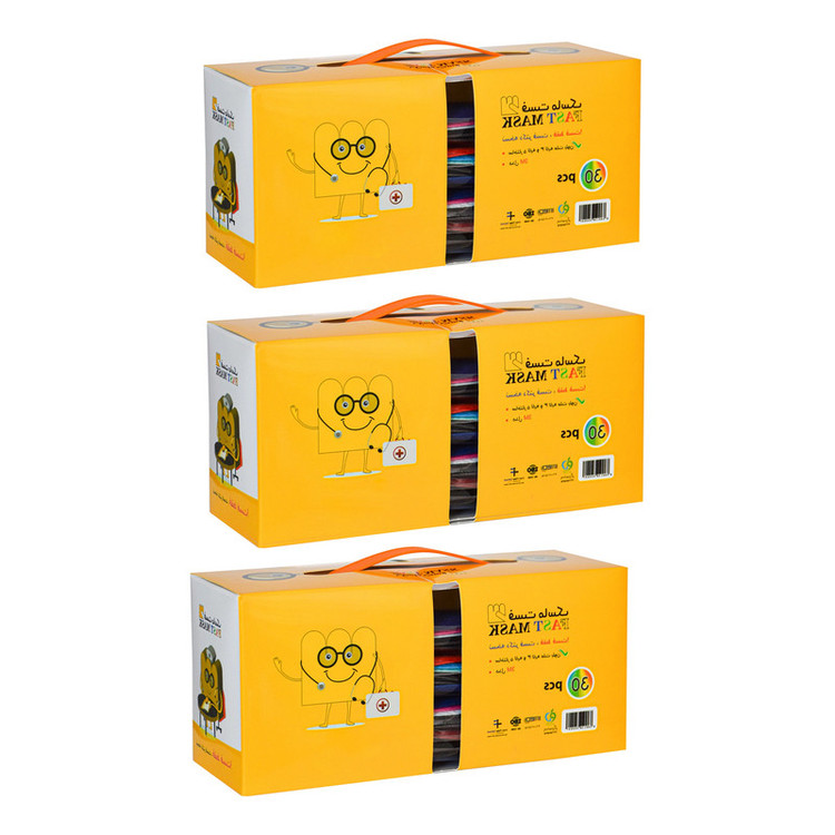 ماسک تنفسی دکتر فست مدل 3 بعدی 5 لایه رنگارنگ FAST-KF94، سه بسته 30 عددی. مجموعا 90 ماسک سه بعدی کودک مناسب برای کودکان 8 الی 16 سال. دارای لایه ملت بلوند