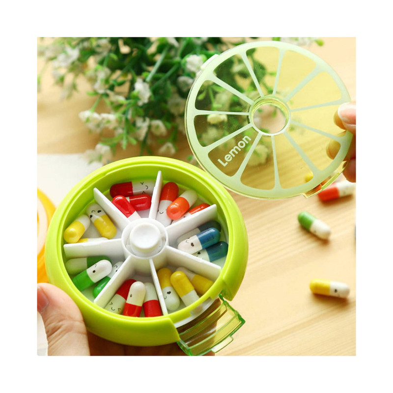 جعبه تقسیم مخصوص استفاده برای قرص ، دارو ، آب نبات و غیره مجهز به شاسی چرخش محفظه دارای 7 محفظه چرخشی دارای 2 در یک در بزرگ بری ریختن قرص و ی در کوچک برای برداشتن قرص بعد از چرخش جنس : پلاستیک