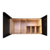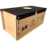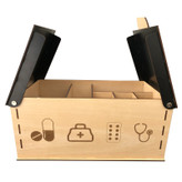 جعبه نگه دارنده دارو تهیه شده از چوب ام دی اف 3 میل دو رو رنگی با بهترین کیفیت است. در قسمت لولا این جعبه از پرچ فلزی کار شده است که علاوه بر استحکام بیشتر و زیبایی نسبت به لولای چوبی به شما این امکان را میدهد که درب را در هر زاویه ای نگه دارید. ابعاد کلی این جعبه 30 در 15 در ارتفاع 13 سانتیمتر است. این جعبه به شش قسمت تقسیم شده که ابعاد هر قسمت در عکس پنجم آلبوم جهت راحتی شما عزیزان نوشته شده است. ابعاد به گونه ای طراحی شده است که انواع قرص،شربت،آمپول،در آن قرار میگیرد.