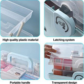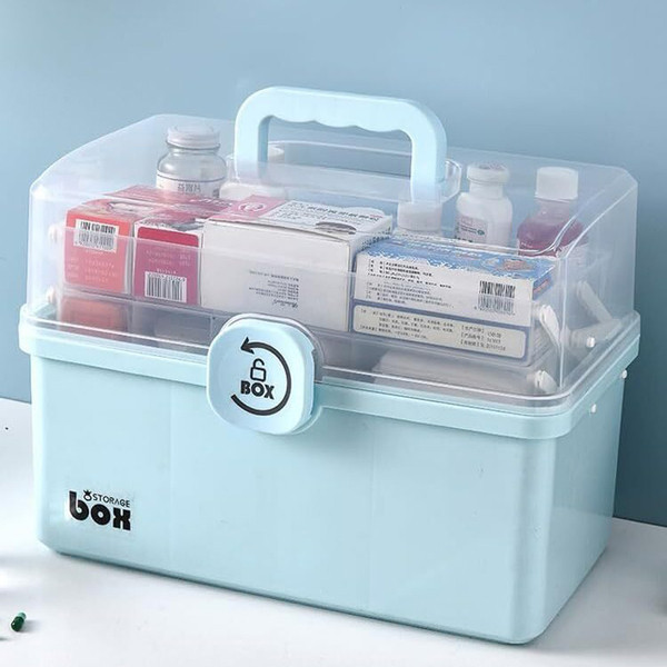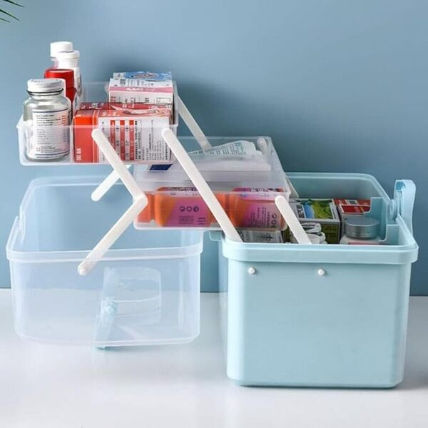 اگر زمانی که بیمار هستید و پیدا کردن دارو شما را کلافه می کند،جعبه نگهدارنده دارو برای شما یک انتخاب عالی میتواند باشد تا بتوانید به راحتی تمام دارو هارا با نظم در آن قرار داده تا دیگر از این بابت مشکلی نداشته باشید این جعبه دارای یک محفظه بزرگ بصورت مجزا برای جعبه های دارو و شربت ها و دو طبقه کوچک به همراه محفظه جهت قرار دادن سایر لوازم میباشد،این محصول برای جابجایی راحت تر شما دارای یک دسته میباشد که حمل آن را آسان میکند.ضد آب و مقاوم در برابر رطوبت،تحمل دما از20-درجه الی 80+درجه است.