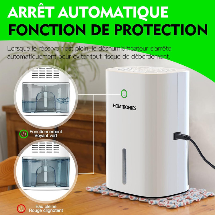 رطوبت گیر کارآمد و هوشمند:جذب رطوبت با استفاده از فناوری نیمه هادی پیشرفته برای حذف موثر و هوشمند رطوبت از هوا، رطوبت گیر فشرده Homtronics می تواند به طور موثر تا 350 میلی لیتر رطوبت هوا را در روز (در 86% درجه فارنهایت و 80 درجه فارنهایت) حذف کند. مجهز به مخزن آب با ظرفیت بالا:رطوبت گیر با مخزن آب شفاف با ظرفیت بالا (27 اونس/800 میلی لیتر)، فضای زیادی را برای ذخیره آب فراهم می کند و به شما امکان می دهد میزان آب جمع آوری شده توسط رطوبت گیر را در زمان واقعی مشاهده کنید. . قسمت پایین مخزن دارای یک بریدگی است که امکان برداشتن، ریختن و تمیز کردن آسان را فراهم می کند! رطوبت زدایی فوق العاده آرام:رطوبت گیر قابل حمل از فناوری Peltier استفاده می کند، رطوبت گیر هنگام کار صدای زیادی تولید نمی کند. رطوبت گیر هوا ضد کپک سر و صدای کمتر از 35 دسی بل است، بی سر و صدا بدون سر و صدا کار می کند، خواب، کار یا مطالعه شما را مختل نمی کند. رطوبت گیر عالی برای اتاق خواب، دفتر، اتاق نشیمن و سایر فضاها. حفاظت از خاموش شدن خودکار:هنگامی که مخزن آب پر است، رطوبت گیر به طور خودکار متوقف می شود تا از خطر سرریز جلوگیری شود. هنگامی که رطوبت زدایی در حال انجام است، چراغ سبز همیشه روشن است. هنگامی که مخزن آب وجود ندارد / هنگامی که آب پر است، چراغ قرمز چشمک می زند. توجه: دکمه پاور را به مدت 3 ثانیه فشار دهید تا نشانگر برق خاموش شود، میزبان همیشه کار را رطوبت زدایی می کند. فشرده و قابل حمل، صرفه جویی در انرژی: رطوبت گیر هوا سبک و قابل حمل است، وزن آن 815 گرم است، با ابعاد 6.2 × 4.9 × 10.1 اینچ، می تواند در هر مکانی قرار گیرد و برای اتاق هایی که از 107 فوت مربع تا 800 متر مربع هستند مناسب است. پا رطوبت گیر برقی صرفه جویی در مصرف انرژی دارد: برای کارکرد 24 ساعته فقط 0.54 کیلو وات برق مصرف می کند. نسبت به جاذب های شیمیایی سنتی سازگارتر با محیط زیست و راحت تر است فقط با فشار دادن یک دکمه روشن کنید: برای روشن کردن دستگاه به آرامی فشار دهید، دوباره فشار دهید تا دستگاه خاموش شود. عملکرد ساده، رطوبت گیر سریع، کنترل آسان. شما را از روزهای مرطوب دور نگه می دارد و یک محیط زندگی سالم را ترویج می کند. توجه: در صورت پاشیدن آب به دستگاه، حتماً آب را با یک پارچه خشک پاک کنید تا قطرات آب باعث اتصال کوتاه دستگاه نشود