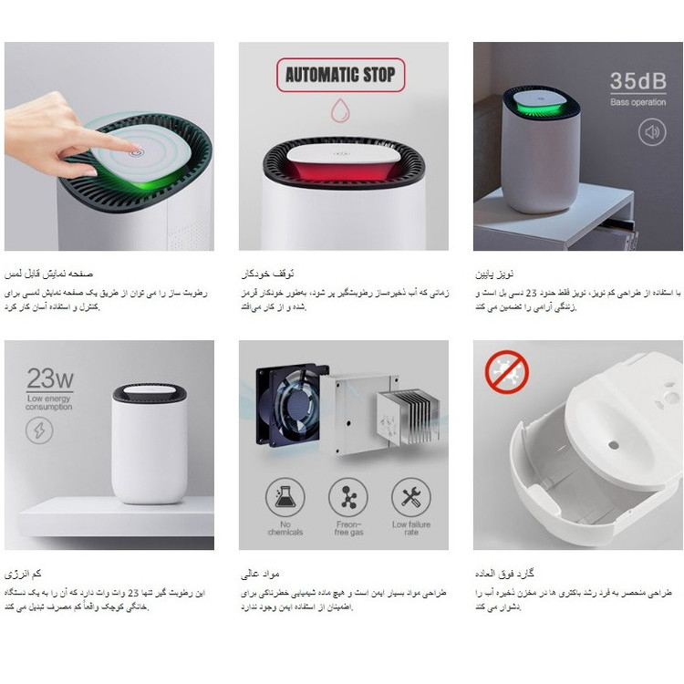 قابلیت خاموشی خودکار , قابلیت شستوشو , قابلیت کنترل رطوبت محیط