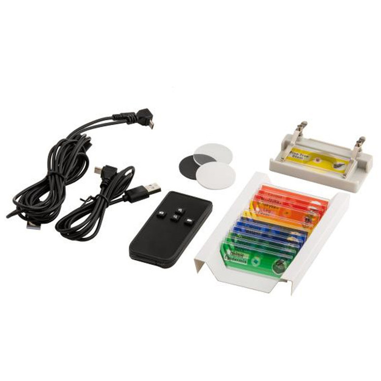 کابل USB برای اتصال به کامپیوتر،باتری داخلی، دفترچه راهنما و نرمافزار AMCAP