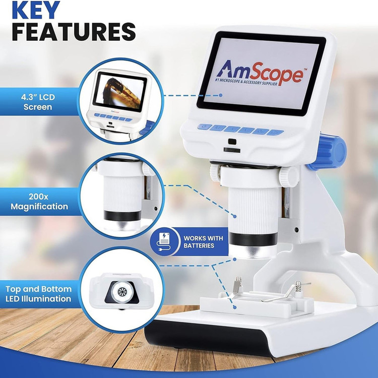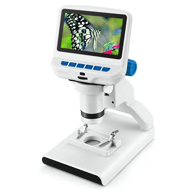 میکروسکوپ دیجیتال یک ابزار پیشرفته برای مشاهده و ثبت دنیای میکروسکوپی است. این دستگاه با صفحه نمایش 4.3 اینچی و بزرگنمایی 1200 برابر، امکان مشاهده و بررسی دقیق نمونههای مختلف را فراهم میکند.سیستم تصویربرداری این میکروسکوپ با رزولوشن 4032×3024 پیکسل برای عکس و 1980×1080 برای ویدیو، تصاویری شفاف و با جزئیات دقیق ارائه میدهد. محدوده فوکوس 1.2 تا 10.5 سانتیمتری انعطافپذیری بالایی در مشاهده نمونههای مختلف ایجاد میکند.محتویات محصول شامل میکروسکوپ دیجیتال کابل USB برای اتصال به کامپیوتر،باتری داخلی، دفترچه راهنما و نرمافزار AMCAP است.OptiMax 501 برای طیف گستردهای از کاربردها از جمله مطالعات علوم زیستی، بررسی قطعات الکترونیکی، جواهرشناسی و کنترل کیفیت صنعتی طراحی شده است. سیستم نورپردازی هوشمند با 9 LED تنظیمپذیر (8 LED اطراف لنز + 1 LED پایه)، مشاهده دقیق انواع نمونهها را امکانپذیر میسازد