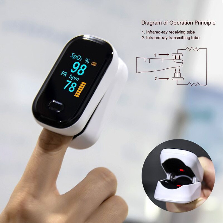 اندازهگیری سریع و دقیق میزان اکسیژن خون در سه ثانیه - دارای نشان استاندارد کیفیت اروپا CE - وضوح بالا نمایشگر OLED - دارای بند آویز - نشانگر میزان ضربان قلب- قابلیت خاموشی خودکار دستگاه - قابلیت چرخش نمایشگر در ۴ جهت