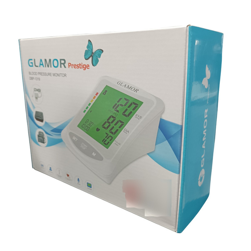 فشارسنج سخنگوی گلامور مدل DBP-1319 یک فشارسنج بازویی دیجیتال از برند گلامور می باشد که با طراحی زیبا و شکیل و همچنین دقت بالا برای اندازه گیری فشار خون به کار می رود. از ویژگی های این فشارسنج می توان به اعلان صوتی به زبان فارسی اشاره کرد. همچنین این فشارسنج قابلیت تشخیص آریتمی قلب یا همان ضربان نامنظم قلب را داراست. البته قابلیت نور پشت صفحه نمایش این مدل، کار با فشارسنج گلامور مدل DBP-1319 را در محیط های تاریک یا با نور کم کاملا راحت می سازد.