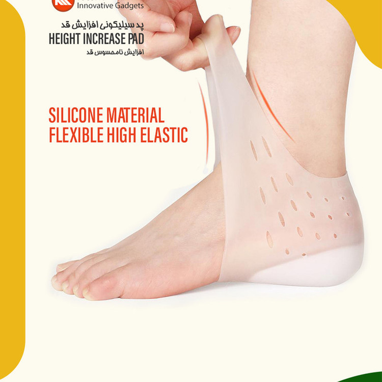جنس سیلیکونی بسیار نرم و با کیفیت بسیار بالا ضد تعریق فری سایز افزایش 3.5 سانتی قد پوشیدنی همانند جوراب با قابلیت استفاده همزمان از کفش قابل استتار با جوراب