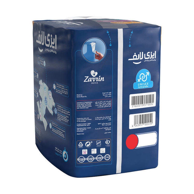 بیاختیاری ادرار پیشامدی رایج میان بزرگسالان و همچنین سنین پایینتر است. ایزیلایف برای این افراد امکانی راحت و کارآمد برای زندگی فعالتر، آسودهتر و مستقلتر فراهم میکند. تمام تلاش متخصصان ما در ایزیلایف یافتن راهکارهای تازه برای بالابردن کیفیت پوشینه بزرگسال است تا افراد بتوانند با وجود مشکل بیاختیاری ادرار، جایگاه شایسته خود را در زندگی فردی و اجتماعی حفظ کنند. پوشینههای ایزی لایف بر اساس اندازه دور کمر، به سه سایز کوچک 18 عددی، متوسط 16 عددی و بزرگ 14 عددی تقسیم میشوند که میتوان مناسبترین سایز را با توجه به اندازه دور کمر برای فرد انتخاب کرد. کش بهکار رفته در قسمت داخلی پوشینه علیرغم اینکه پهن و محکم است، باعث آزار و عرقسوزی بدن فرد نخواهد شد و با توجه به استفاده از پودر جاذب آنتی باکتریال در ساختار پوشینه، رشد و نمو باکتریها و بوی نامطبوع کاهش پیدا کرده و احتمال آلودگی و بروز عفونت در پوست به حداقل خواهد رسید. پوشینه ایزی لایف هم برای خانمها و هم آقایان مناسب است و فرد تا بازیافتن سلامتی کامل میتواند بدون نگرانی و معذب شدن از آن استفاده کرده تا زمانی که مثل سابق توانایی انجام کارهای شخصیاش را داشته باشد.