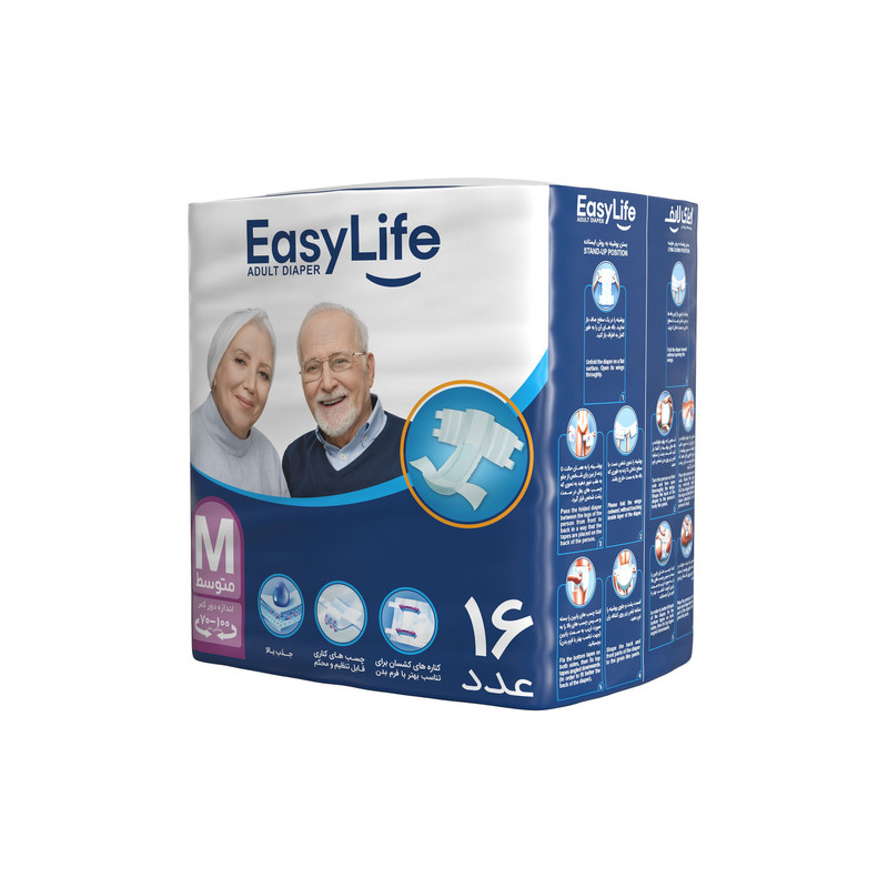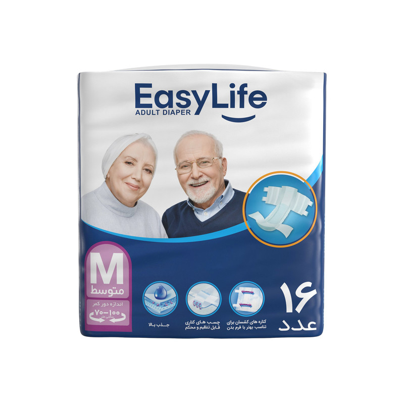 پوشینه چسبی بزرگسال ایزی لایف سایز متوسط بسته 16 عددی