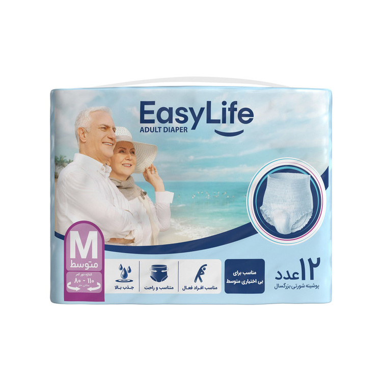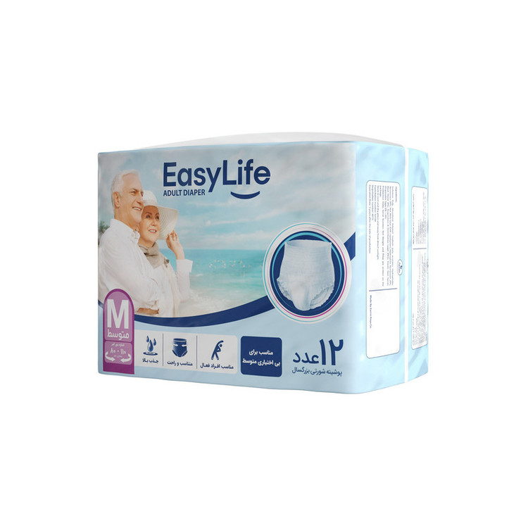 پوشینه شورتی بزرگسال ایزی لایف سایز متوسط بسته 12 عددی