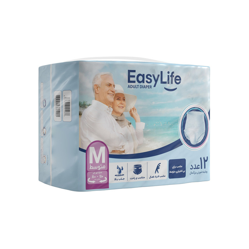 پوشینه شورتی بزرگسال ایزی لایف سایز متوسط بسته 12 عددی
