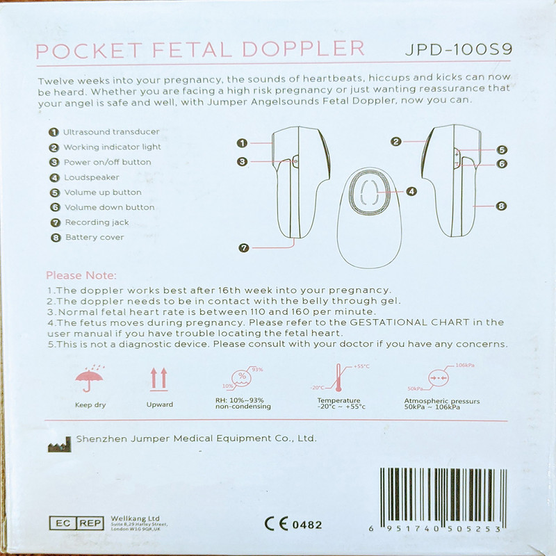 معمولاً از هفته هشتم به بعد برای اولین بار میتوانید ضربان قلب کودکتان را بشنوید. بررسی کردن ضربان قلب جنین بخشی معمول از تمام معاینات و سونوگرافیهای بارداری است، اما دستگاههایی هم وجود دارد که با تهیه آنها میتوانید در خانه از آن برای ردیابی ضربان قلب جنین استفاده کنید. دستگاه «AngelSounds JPD-100S9» برای همین منظور طراحی و تولید شده است. شناسایی ضربان قلب جنین در زمان بارداری میتواند به بررسی وضعیت سلامتی جنین، تشخیص خطر و یافتن راهحلهای مداخلهای کمک کند. برای شنیدن صدای قلب جنین یک هدفون همراه با دستگاه ارائه شده است. البته میتوان این دستگاه را به گوشی هوشمند متصل کرد و با استفاده از اپلیکیشن فارسی مامانیا و انگلیسی Jumper Health صدا را شنید، آن را ضبط کرد. در اپلیکیشن Jumper Health میتوان تعداد ضربان قلب و نوار FHR را نیز مشاهده کرد. انرژی این دستگاه از طریق یک باتری 9 ولتی تأمین میشود. گفتنی است دستگاه JPD-100S9 دارای گواهینامههای CE، ISOو FDA (سازمان غذا و داروی آمریکا) است و از نظر اشعه، امواج الکتریکی و الکترومغناطیسی کاملا ایمن است و خطری ندارد.