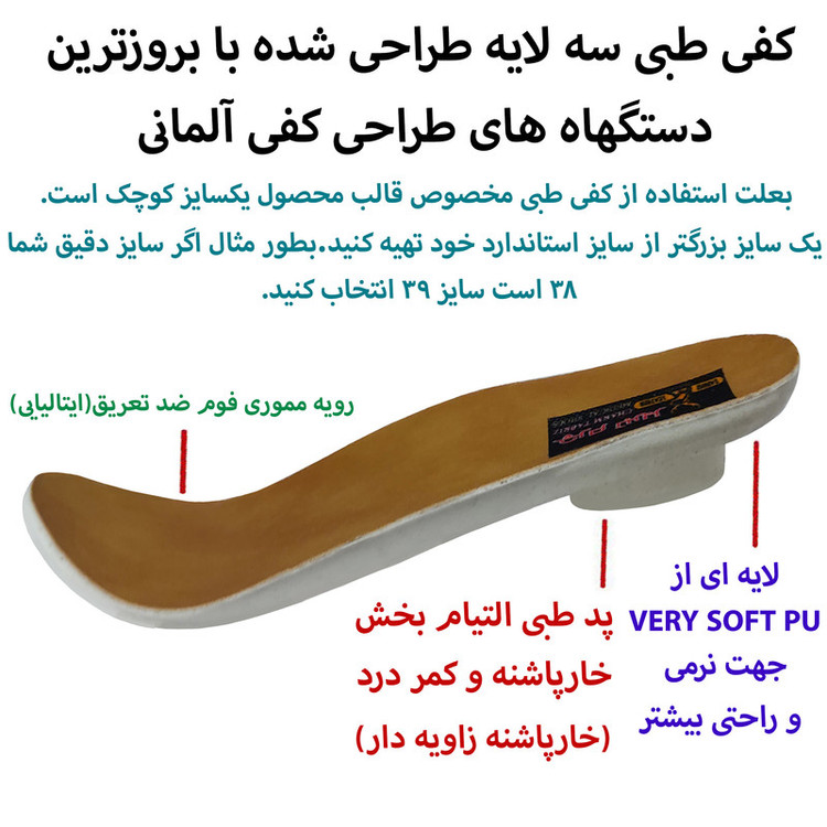 ویژگی کفی کفش: قابلیت ارتجاعی , بالشتک هوا , قابلیت گردش هوا , طبی , قابل تعویض