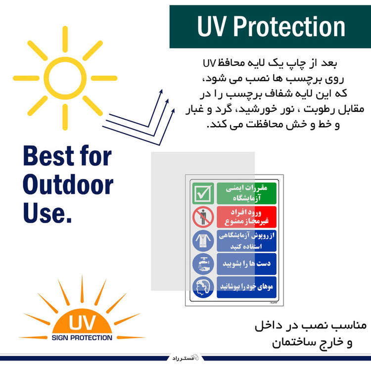 ویژگیهای تابلو و برچسب: مناسب برای محیط داخلی , مناسب برای محیط بیرونی