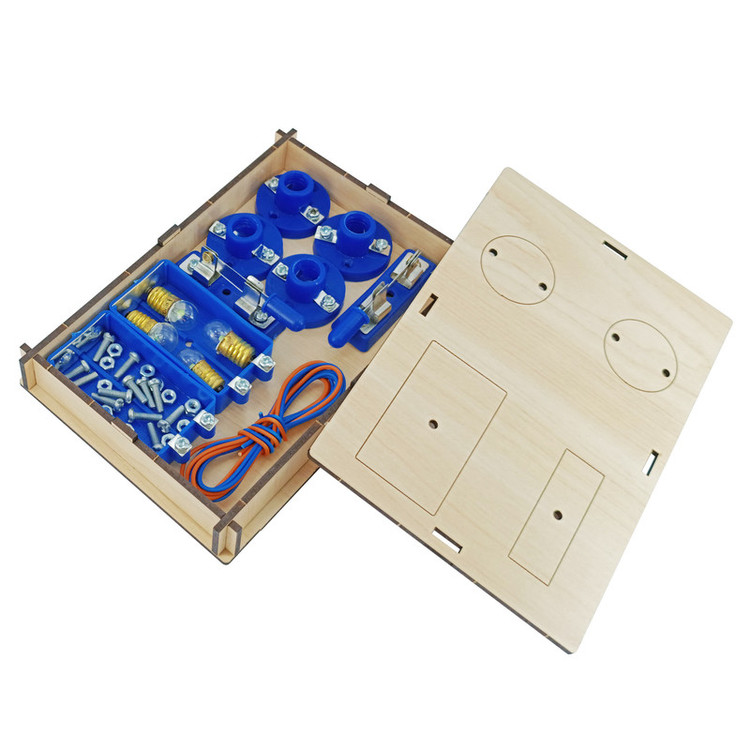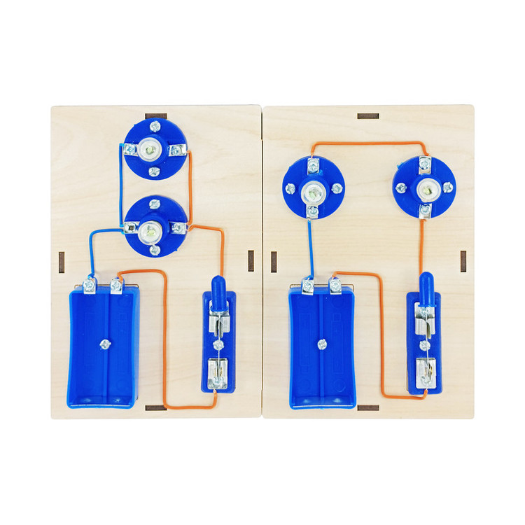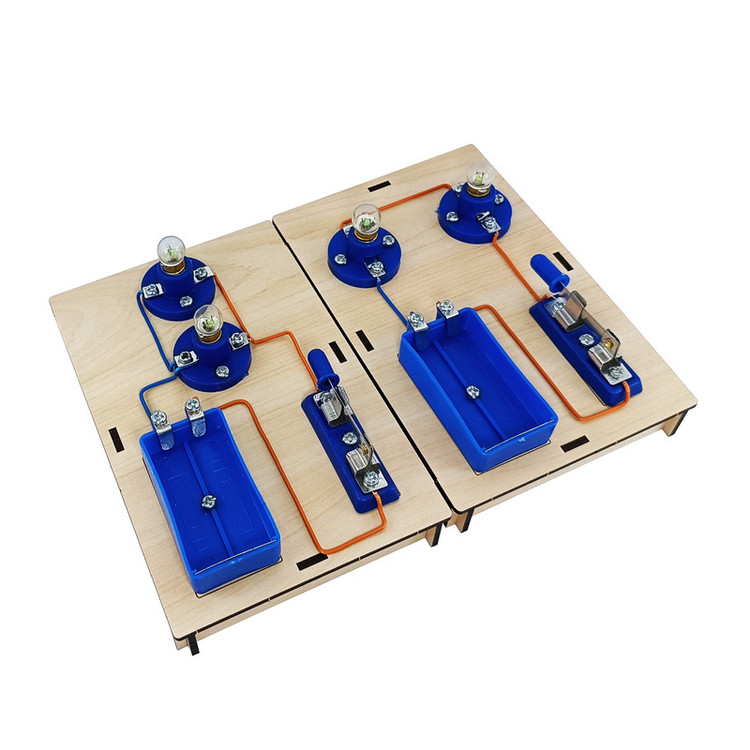 =» کیت کاردستی مدار سری و مدار موازی شامل دو پایه ام دی اف برش خورده دارای سوراخ و جاباتری و کلید و لامپ و سرپیچ و پیچ و … است که شما با استفاده از این لوازم می توانید بصورت مجزا دو مدار موازی و سری را مونتاژ کنید .